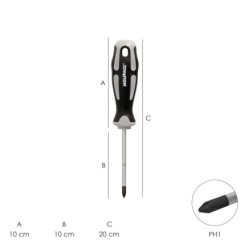 6,28 € -10% 5,65 €Destornillador Phillips Acero S2 Mango TPR Bimaterial, Medida PH 1 x Ø 5,0 x 100 mm, DIN5262, -