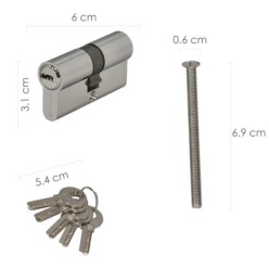 12,30 € -10% 11,07 €Cilindro Seguridad 30x30 mm/13,5 Leva Corta Niquelado Con 5 llaves -