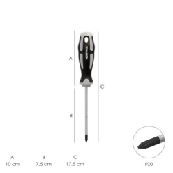 6,68 € -10% 6,01 €Destornillador Pozidriv Acero S2 Mango TPR Bimaterial, Medida PZ 0 x Ø 3,0 x 75 mm, DIN5262, -