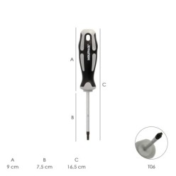 3,98 € -10% 3,58 €Destornillador Torx Acero S2 Mango TPR Bimaterial, Medida T06 x Ø 3,0 x 75 mm, -