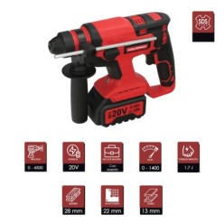 167,20 € -10% 150,48 €Martillo SDS PLUS A Bateria 20 Volt, Con Bateria 4,0 Ah, 1,400 R,P,M, -